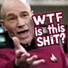 Description: Jean Luc Picard throws out his hand and explain, "WTF is this shit?"